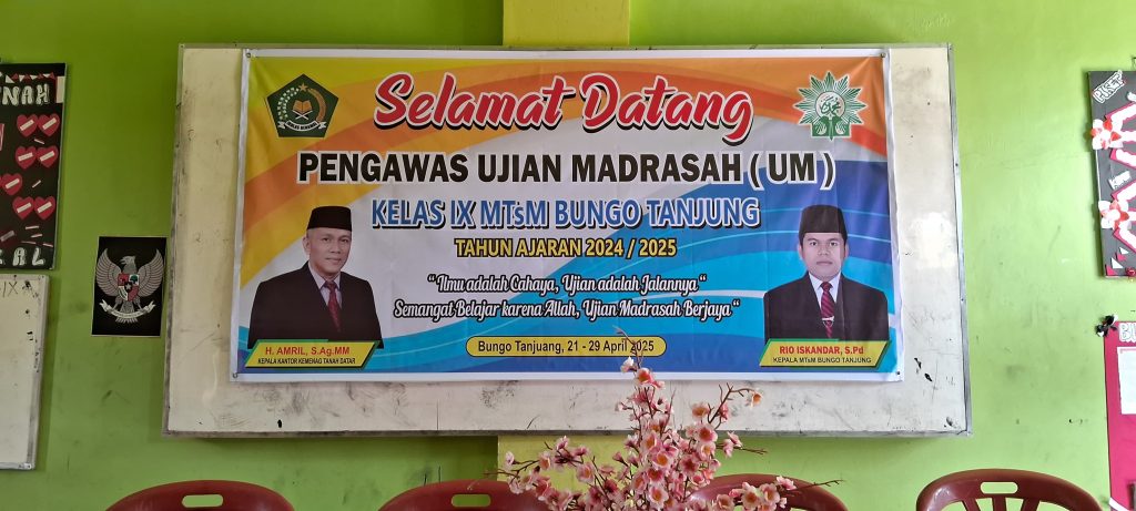 BUNGO TANJUNG, Humas (Senin, 21/4/2025) — Suasana tertib mewarnai hari pertama pelaksanaan Ujian Madrasah (UM) bagi siswa kelas IX Madrasah Tsanawiyah Muhammadiyah (MTsM) Bungo Tanjung. Sebanyak 36 orang peserta didik kelas IX mengikuti ujian yang untuk pertama kalinya dilaksanakan berbasis Computer Based Test (CBT) secara online dengan menggunakan perangkat handphone android pada Senin (21/04/2025).